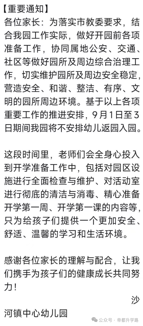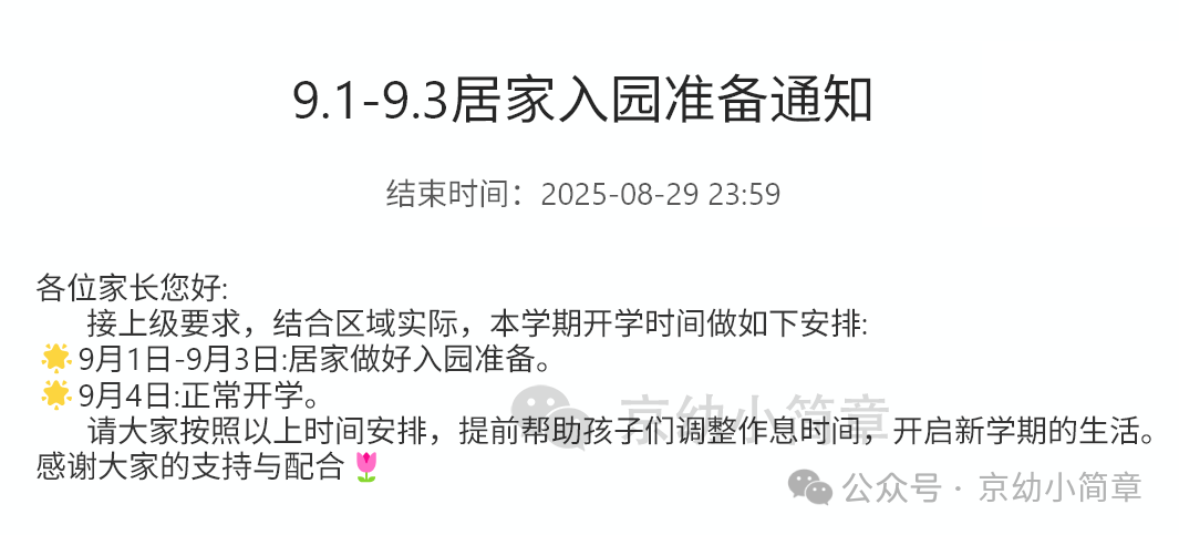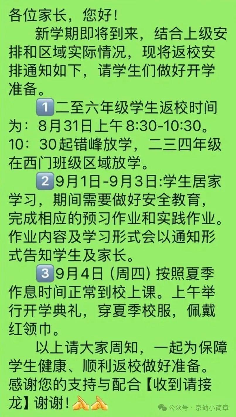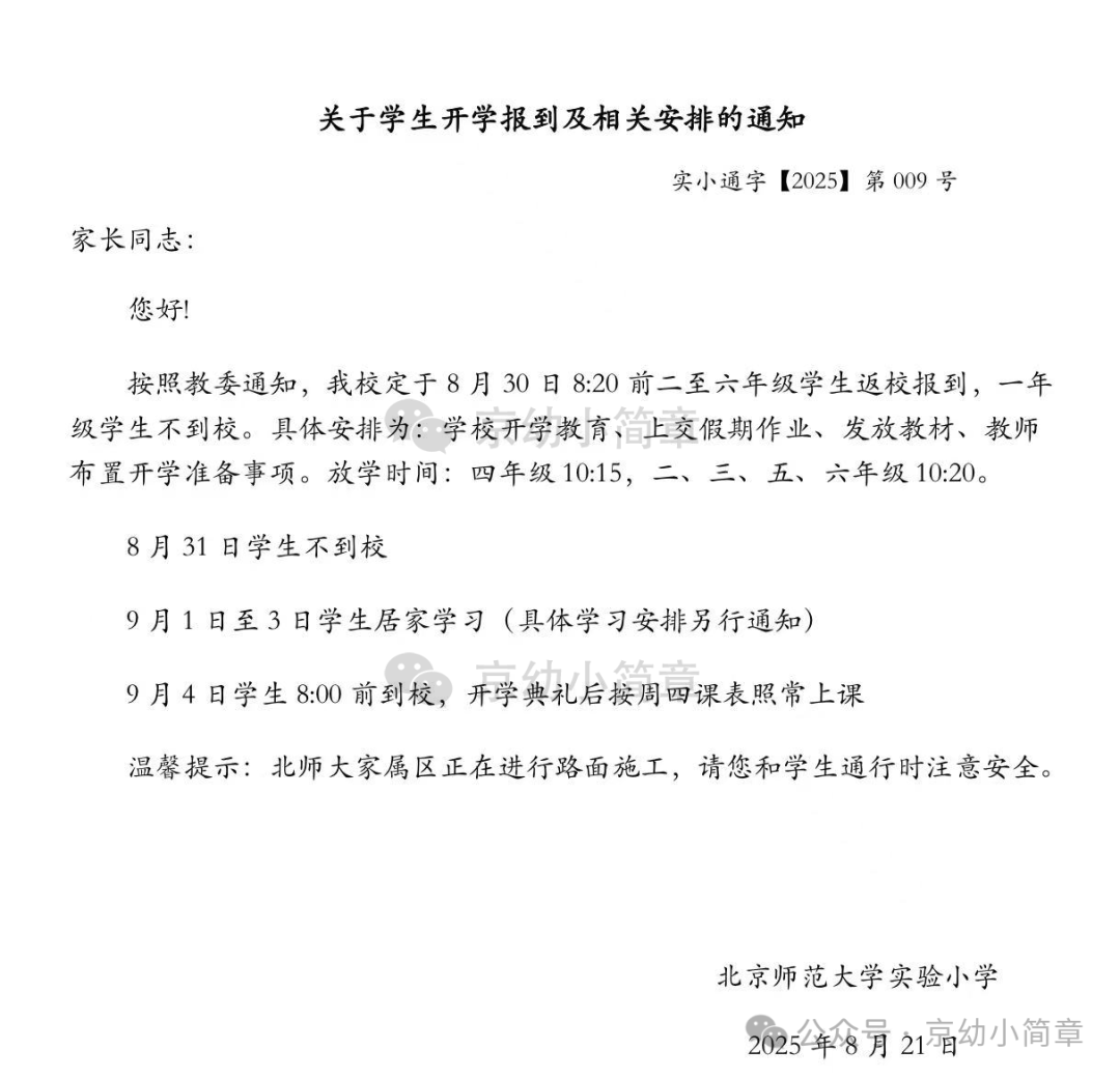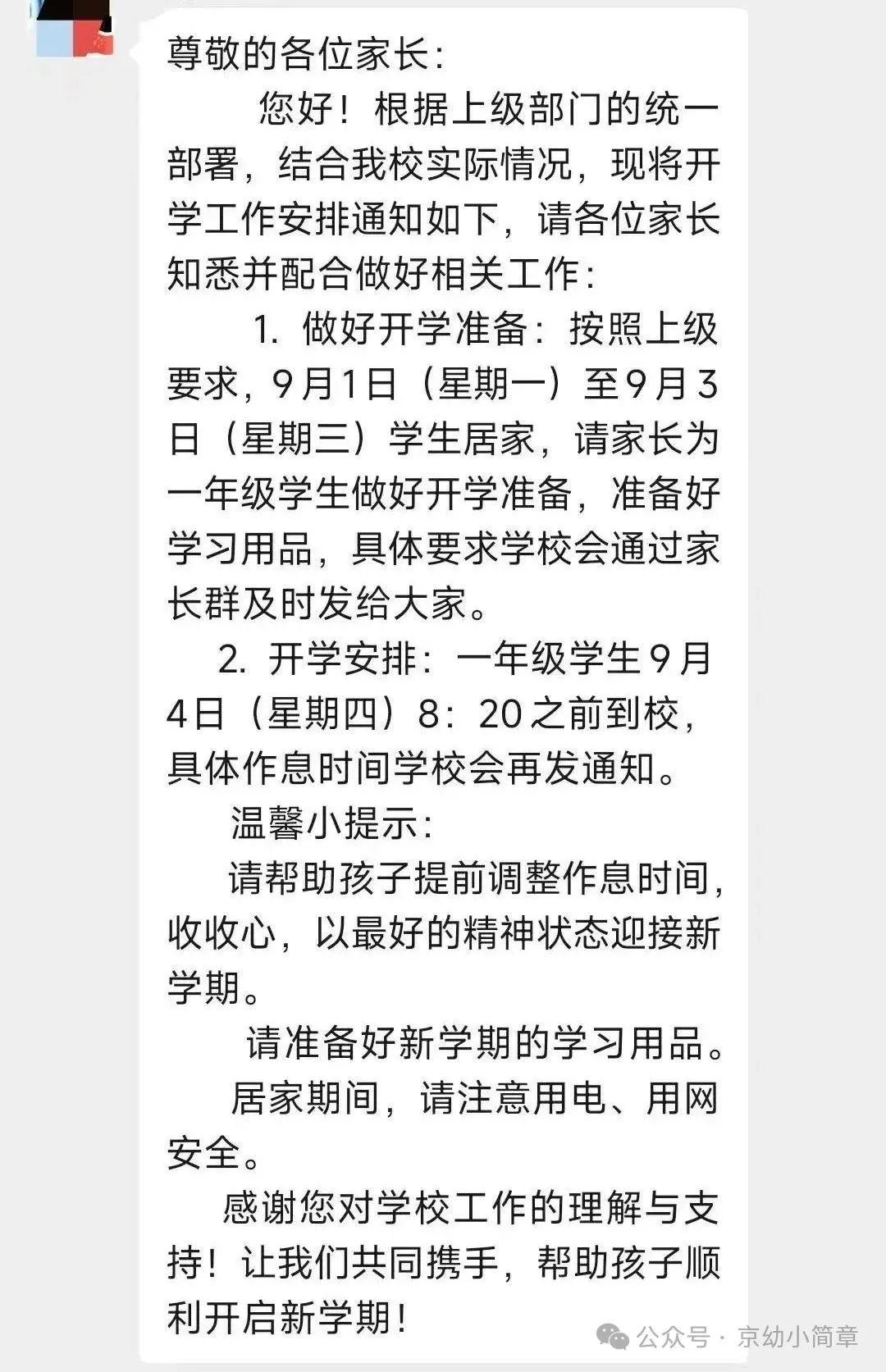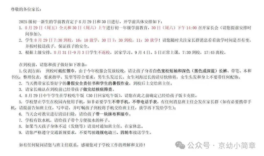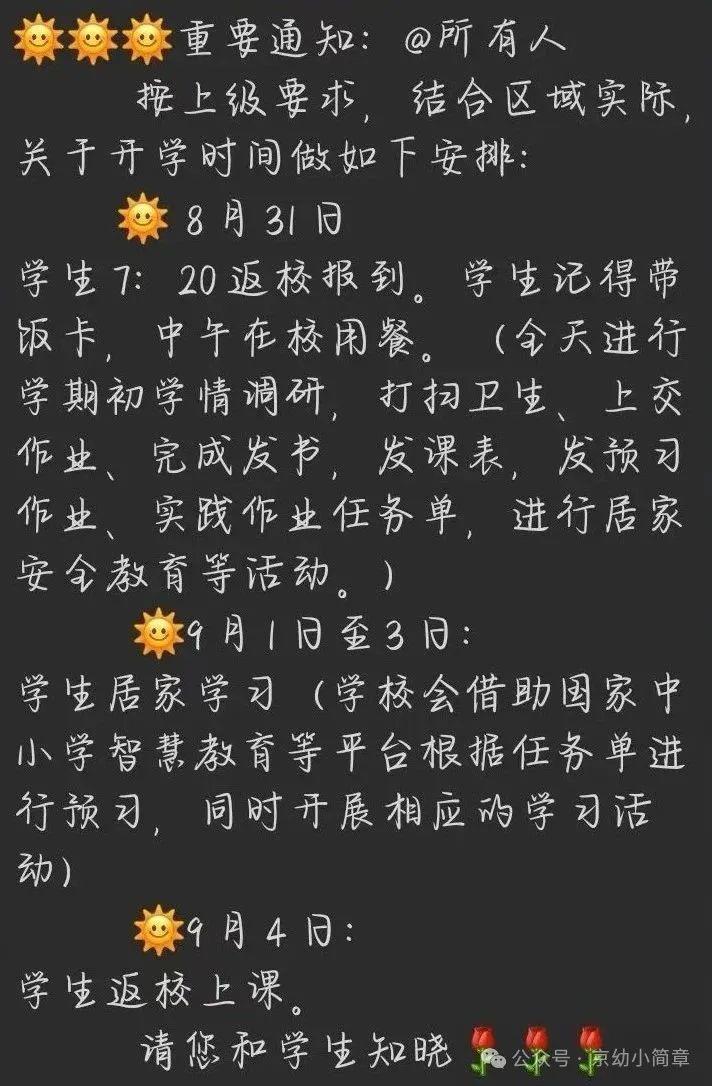 此外,家长需密切关注学校通过班级群、公众号等渠道发布的最新通知,及时了解报到流程、居家学习内容、开学典礼安排等信息,有疑问可及时与班主任沟通。